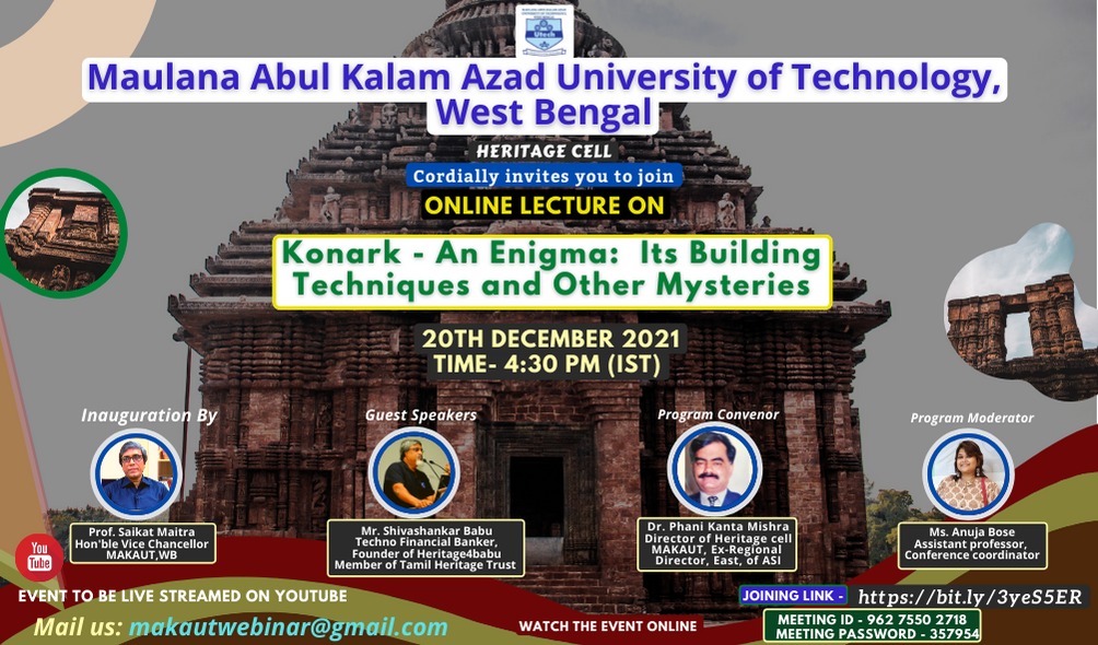 Topic: Konark - An Enigma "How it was built and its mysteries" By Mr. Shivashankar Babu